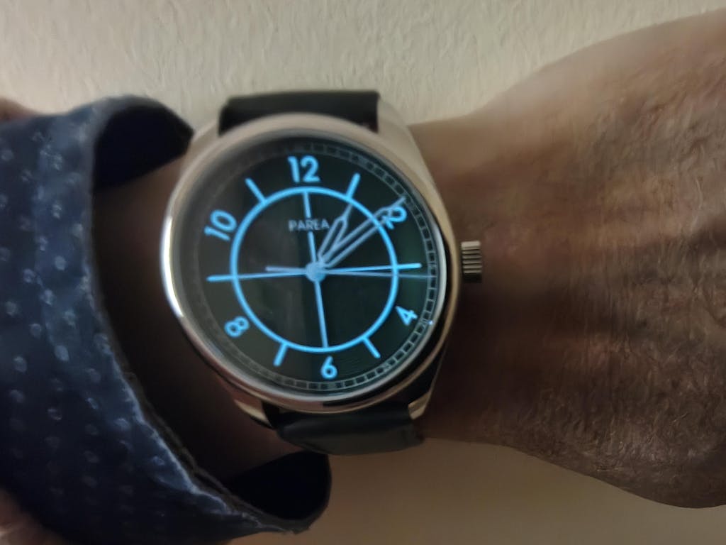 I absolutely love my Parea Sector. The design is both clean and sophisticated, making it perfect formal or everyday wear. The lume is awesome, I love showing all my friends how vibrant it is.
