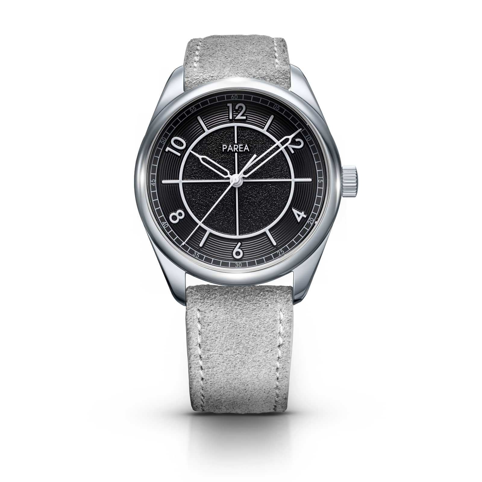 To offer maximum versatility, each Parea Sector comes with two premium strap options: a matching calfskin leather strap and an extra suede strap, both handmade in Germany by a third-generation family-run workshop.